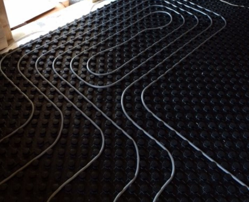 - Dodávka a montáž podlahového vykurovania polyetylénovými rúrkami s kyslíkovou bariérou Vitoset PEX-c Ø 16x2,0 s použitím nopovej systémovej izolačnej dosky Vitoset NM 50/30 z expandovaného polystyrénu.